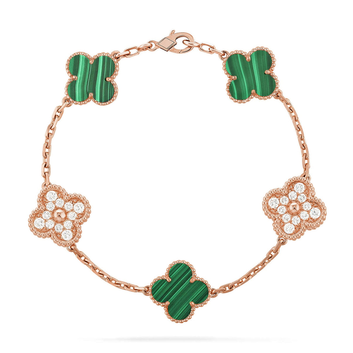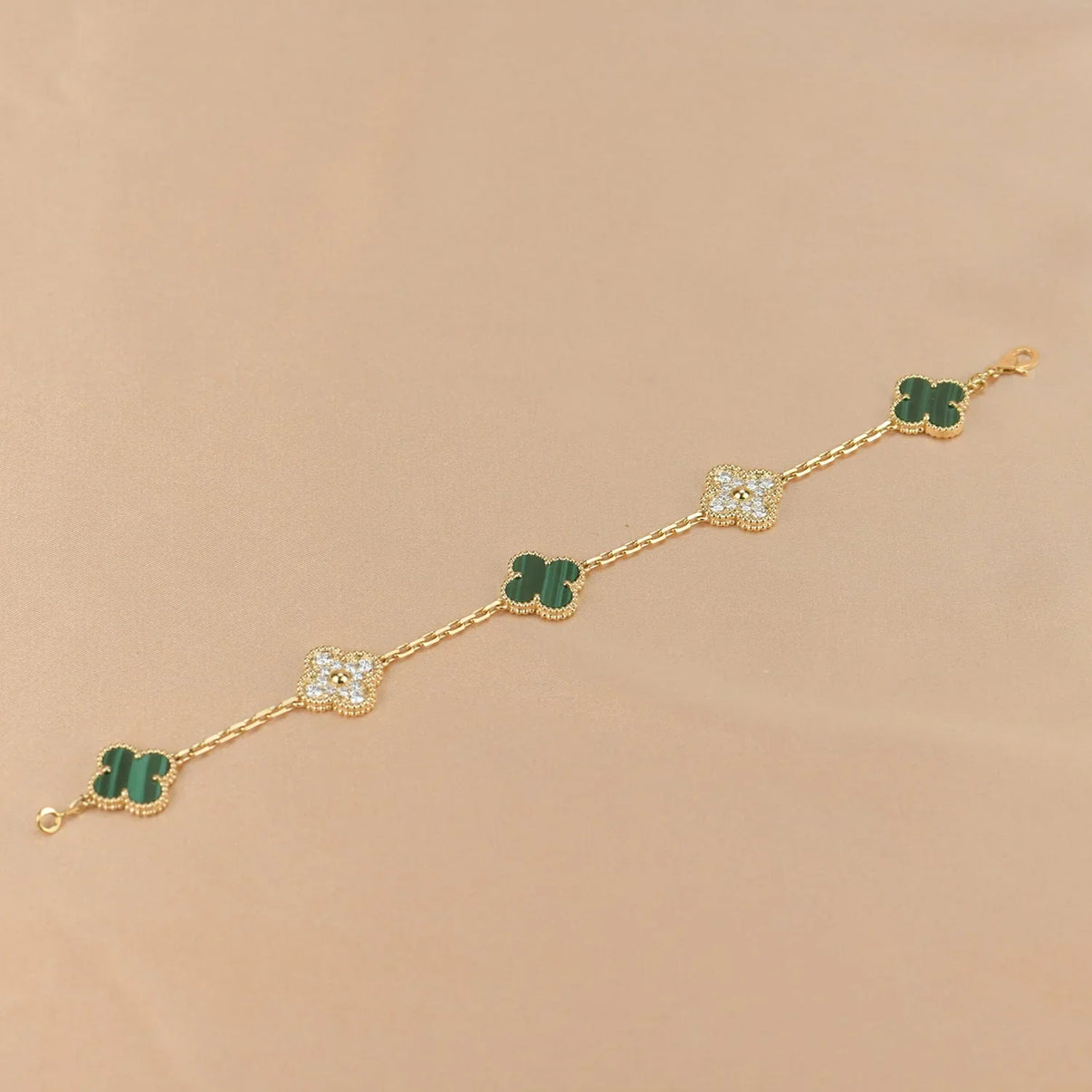 [LUCKY LOVE] CLOVER 5 MOTIF MALACHITE BRACELET COLLECTION