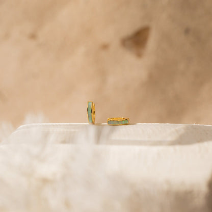 Stack our Opal Inlay Hoops with your everyday jewelry pieces to add a sparkle of color and uniqueness. With our three different opal colors, these huggie hoop earrings are a great gift for someone just as special and one of a kind.