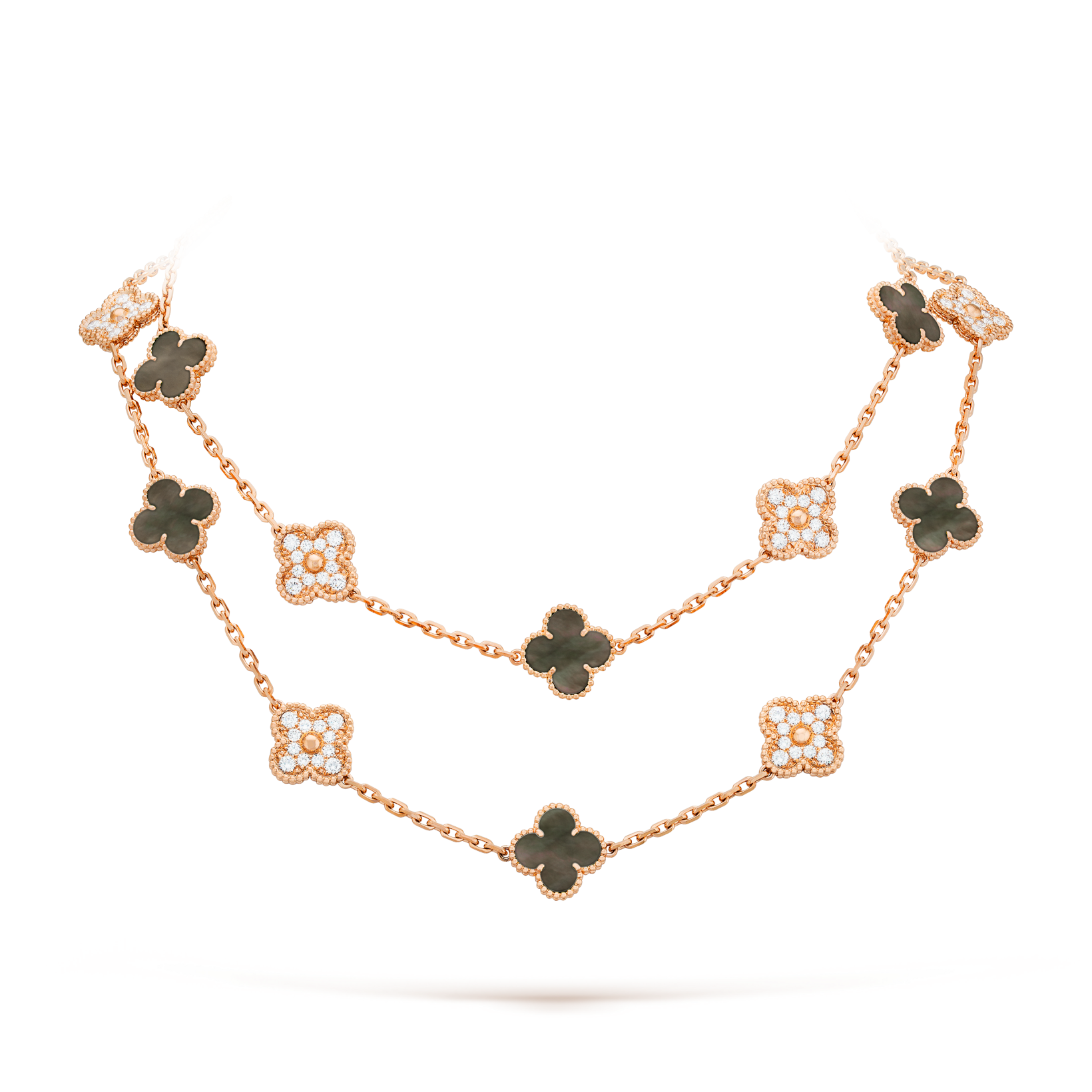 [LUCKY LOVE]CLOVER 20 MOTIFS DARK MOP DIAMOND NECKLACE