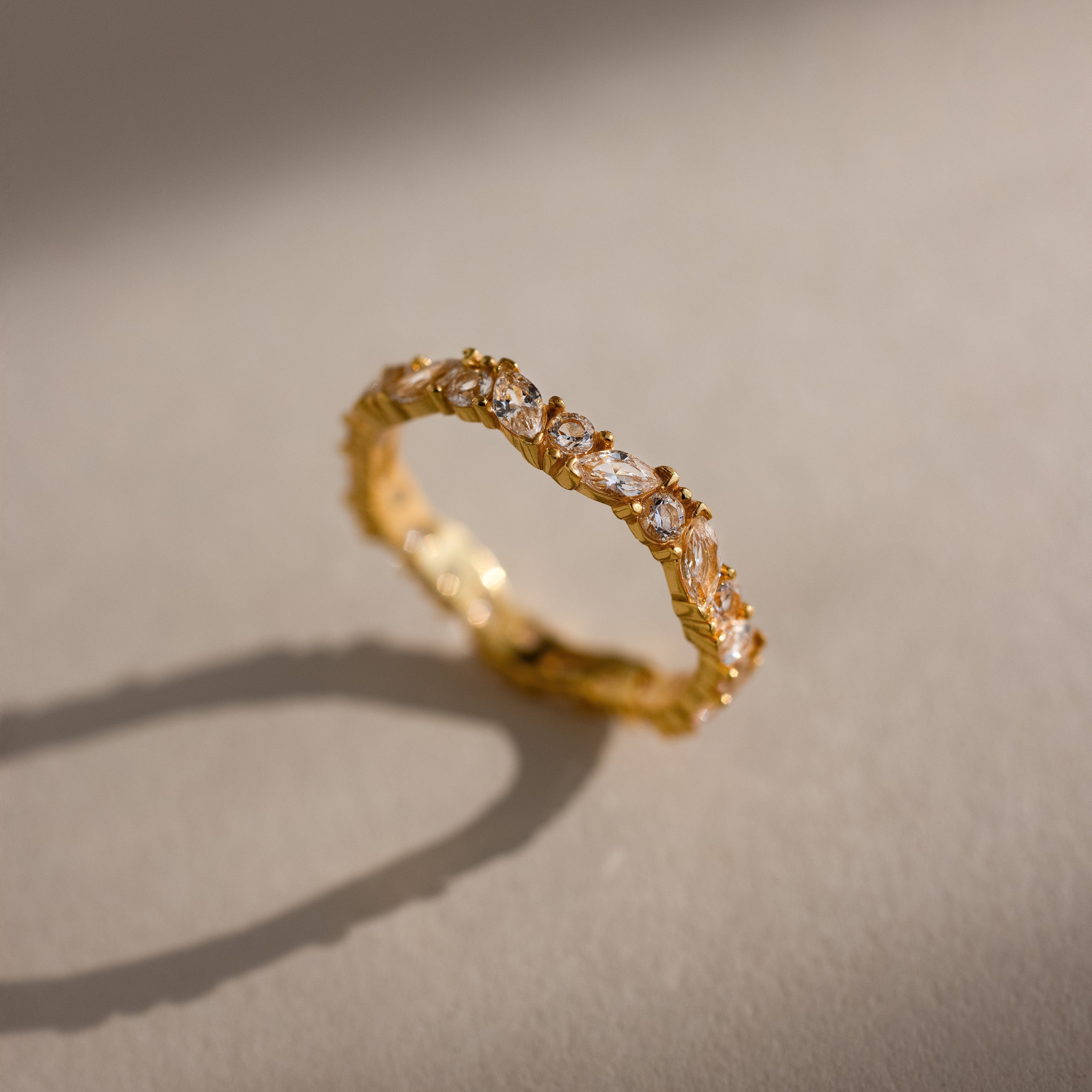 A delicate dazzle you__l never want to take off, our Staggered Marquise Birthstone Ring features a timeless eternity band with alternating marquise and round-cut stones. Perfect as a wedding band, bridesmaid gift, or just because, it's a timeless keepsake designed to sparkle from every angle _