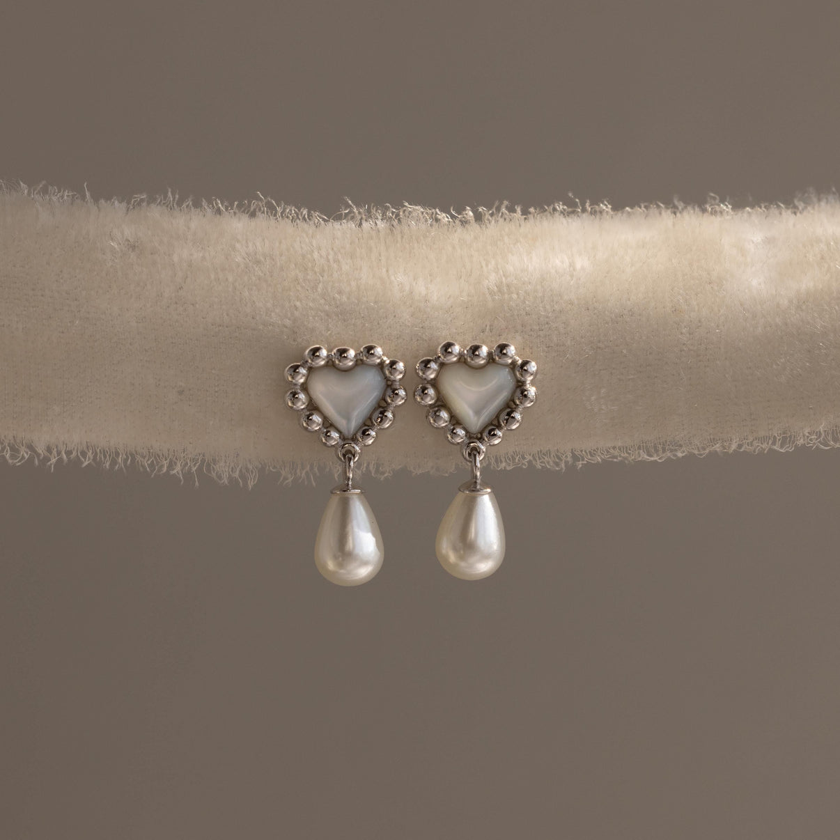 Pearl Heart Beaded Drop Studs